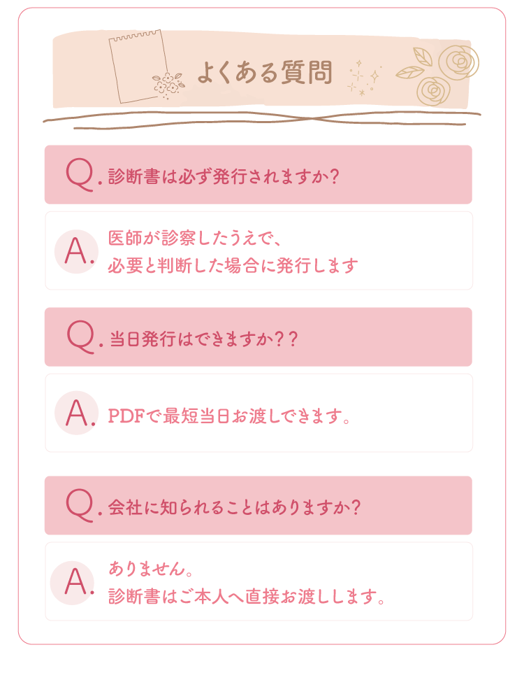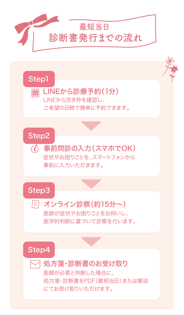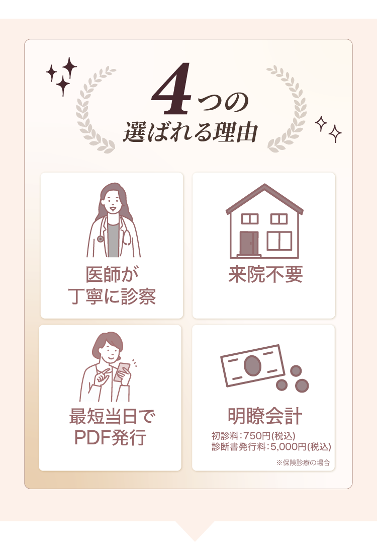 精神科・診療内科オンライン診療 2026.01.09 当てはまるものをタップしてください。 眠れない・起きられない仕事に行くのが辛い動悸・不安を感じるよくわからない 今回の診断書は、どのような目的でご希望でしょうか? 休職・会社への提出傷病手当・給付金など学校への提出自分の体調管理のため 現在、心療内科への通院歴はありますか? 初めて相談する以前通っていた現在通院中 診断書はいつ頃までに必要ですか? 今日すぐに欲しい!2〜3日以内には欲しい今週中にあればOK特に急ぎではない
